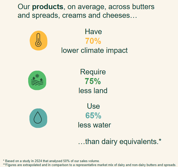 By helping more people switch to our products, away from conventional dairy, we can contribute even more to global emissions reductions. We aim to inspire this shift to lower carbon products, while also achieving our net zero emissions targets for 2030 and 2050.